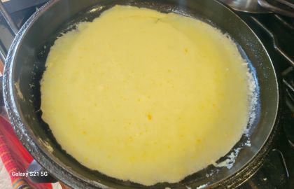 Cast iron, crepe or non-stick skillet with 8” bottom