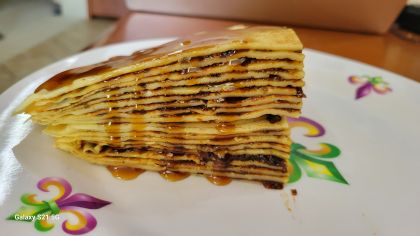 Stack crepes forming a cake